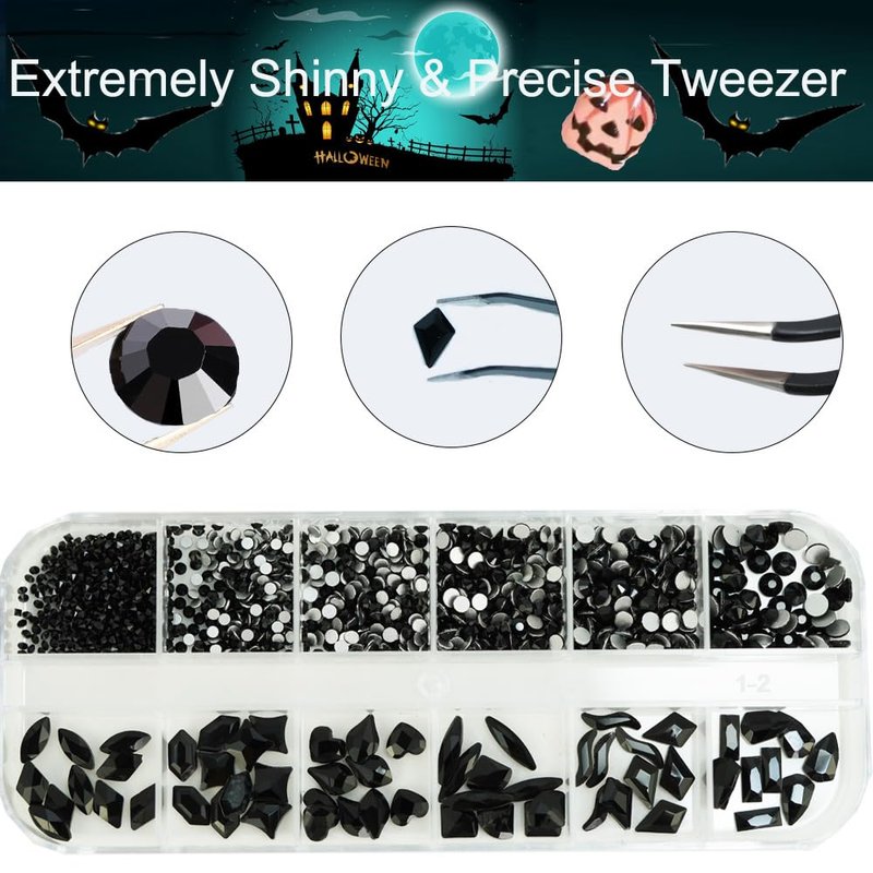 - Easy Use for Beginner & Carry: Flat and frosted back design for easy adhesion by nail glue, 1 precise Tweezers and 1*crayon,The black nail Gems jewels can be easily used by beginners even for kid. And those black gems stones are very light and come with1 box, so it can be conveniently to store and carry when in traveling or working.