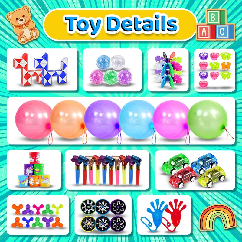 - 🌈【Treasure Box Prizes Toys】Beautifully packaged toys pack is a favourite classroom prize for kids,treasure chest prizes of toys for the classroom. Good for improving children's memory, comprehensive skills, finger coordination and verbal communication skills, and reducing kids' stress.Perfect as goodie bag stuffers, miniature novelty toys for kids!