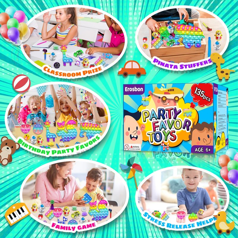 - 🎁【Amazing Gift&Rewards】The fidget party favor toys are the first choice for kids' birthday gift toys, classroom prizes, classroom treasure chest toys for kids, carnival prizes, pinata stuffers, Christmas stocking stuffers, goodie bag stuffers, miniature novelty toys, Halloween party supplies. It is a perfect gift for children3-5 4-8-12 years old bulk party toys. Suitable for adults and children to relax in their free time. Can also be played at parties, stations, libraries and anywhere else.