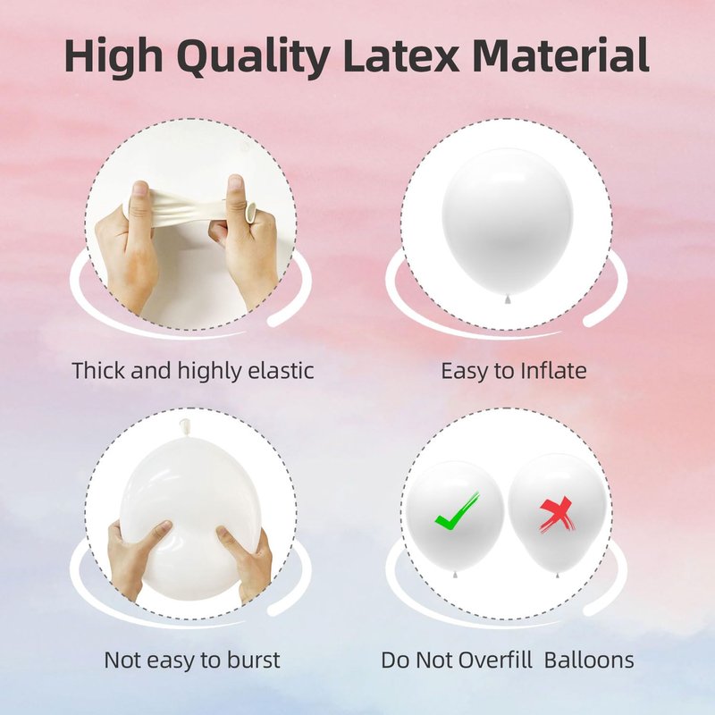 - Satisfaction Guaranteed - Do not inflate the matte white balloon to more than 85% to avoid bursting. Use alone or mix and match with different balloon sizes for a custom white balloon garland kit!