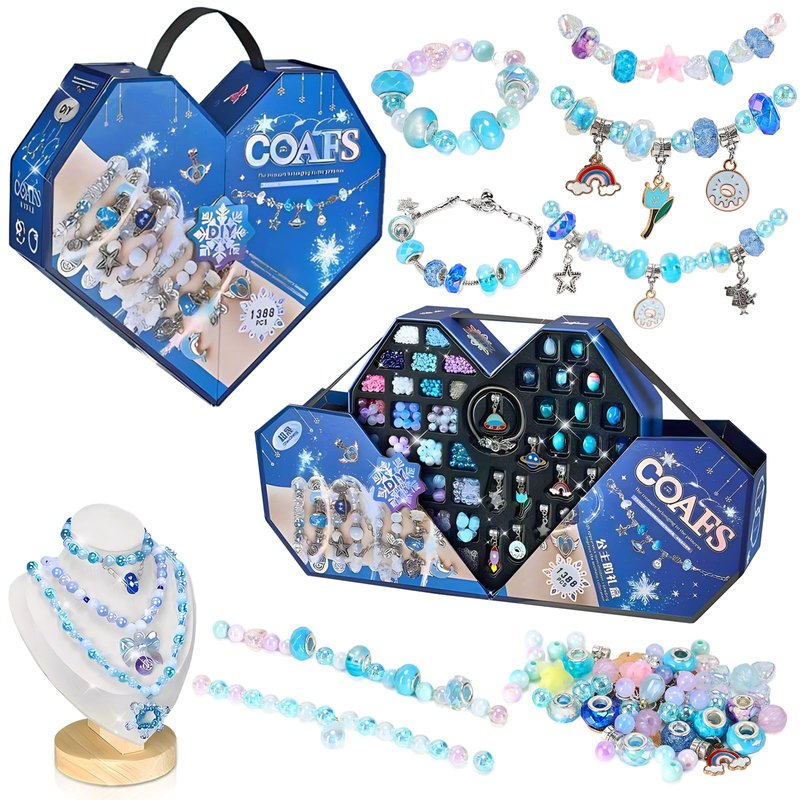 1388pcs Charm Bracelet Making Kit for Girls,Jewelry Making Kit Supplies,DIY Bead Bracelet Girls Toys,Birthday Christmas Craft Gifts Set for Kids Age 4 5 6 7 8 10 11 12 (01 Blue)