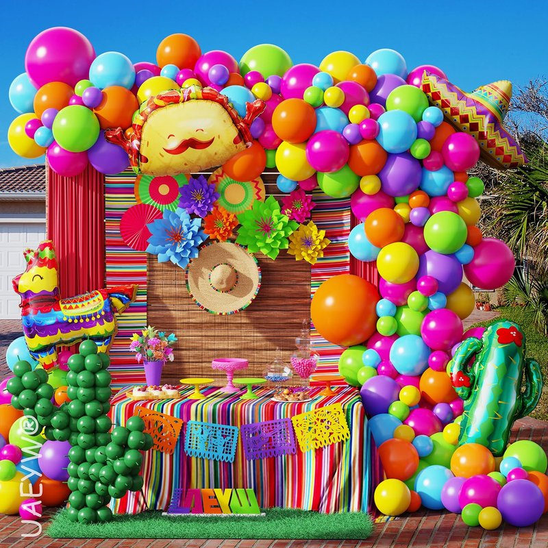 - WIDELY APPLICATIONS: The mexican fiesta balloon arch garland kit is perfect for mexican themed party,fiesta theme party decorations,llama birthday party,summer party,cinco de mayo party,taco bout a party,carnival party,birthday party and wedding bridal shower decor. It is ideal for you to throw a big mexican party and wonderful background props for photo shoots indoor or outdoor.