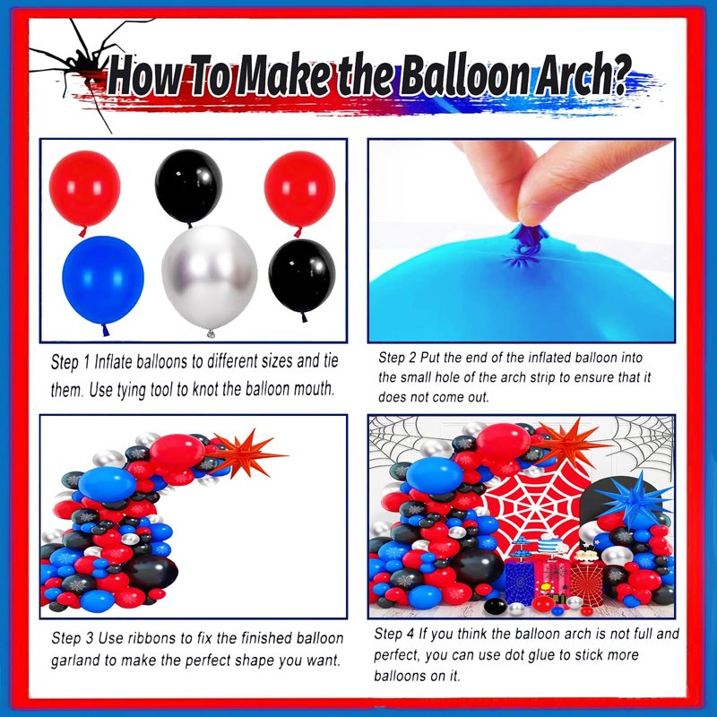 - 【Used In Variety Occasions】Coming with different size balloons, you can decorate them on the any place, adding layers to the party. for graduation, bridal shower, cartoon Spider theme birthday party, baby shower, gender reveal party, children’s day, New Year, anniversary party decorations etc. will give the party a shocking effect