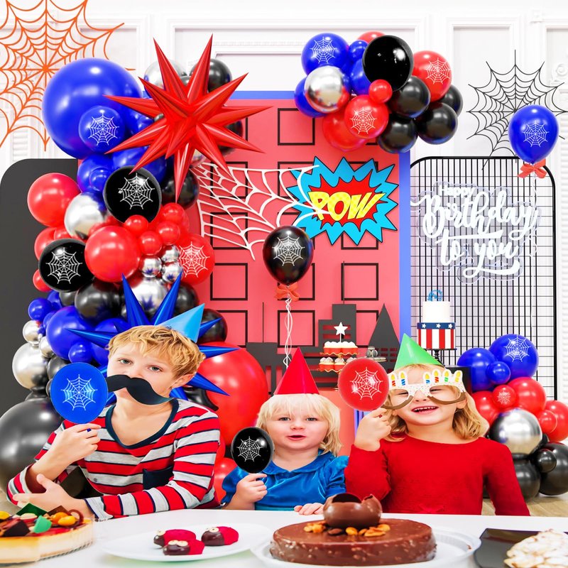 139 Pcs Blue Red Black Balloon Arch Garland Kit, for Cartoon Spider Theme Birthday Party Decorations Boys and Girls Gatherings Party Supplies