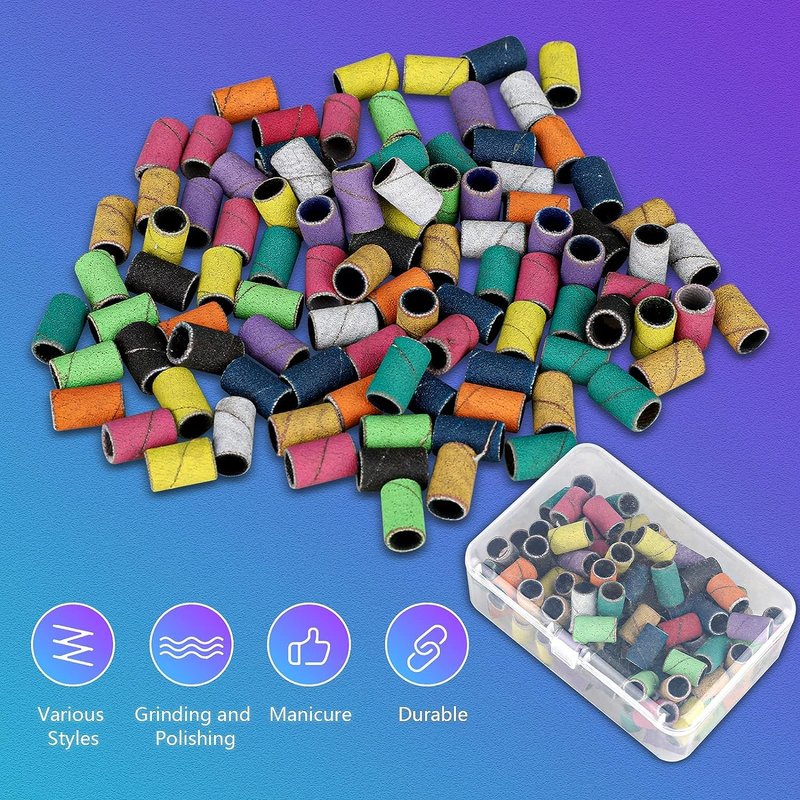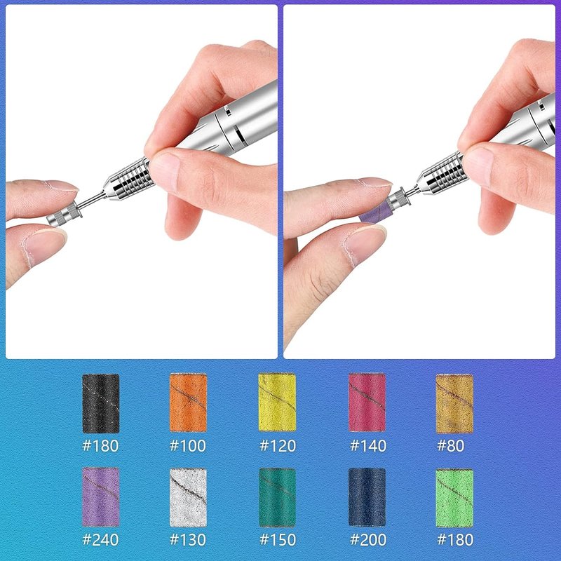 - 10 Colors Nail Sanding Bands Set: You will receive 1 piece 3/32 inch silver Mandrel Bit, and 300 pieces of manicure sanding bands for nail drill, including 180# Black, 100#Orange,120# yellow, 140# Pink, 80#Brown, 240# purple,130# White, 150#Dark green,200#Blue,180#grass green. 10Pcs each color for professional studio use or home use.