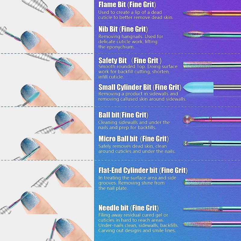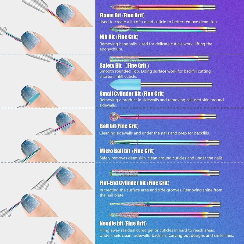 - 13Pcs Nail Drill Bits: Come with 10Pcs different nail bits for nail drill, various shapes and sizes meet the diversified needs. Suitable for natural nails or artificial nails, fit most 3/32" inch nail drill machines.