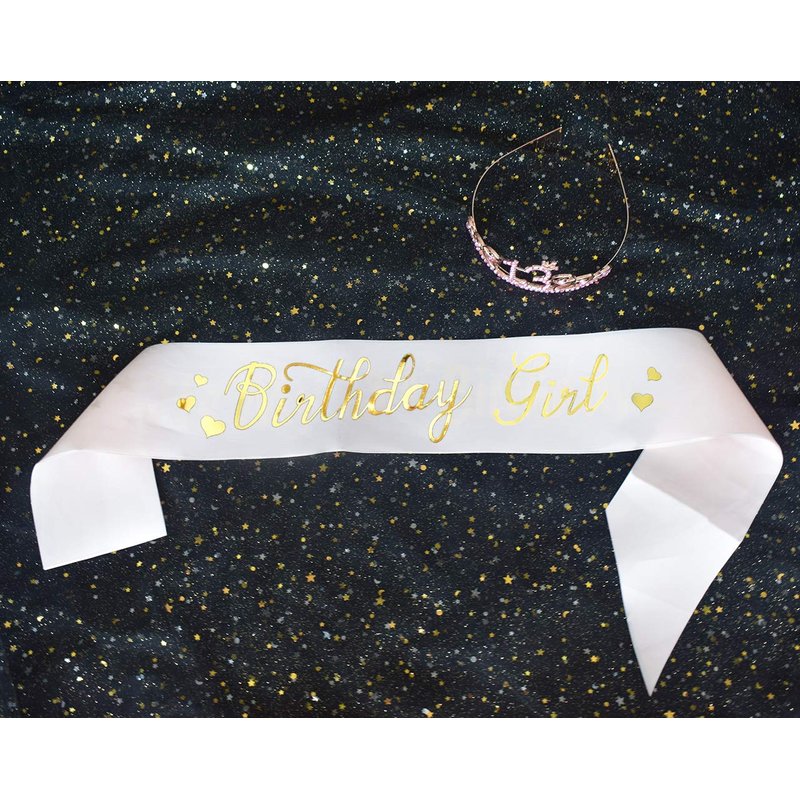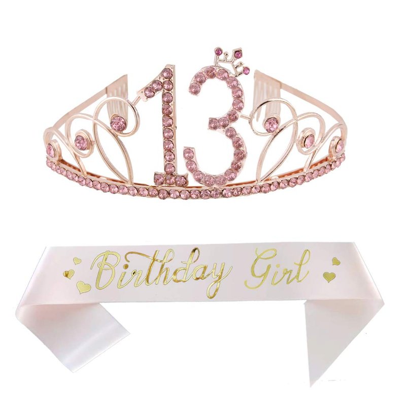 - The Perfect Birthday Party Set - Includes 1pcs Pink “Birthday Girl” birthday sash and 13-year-old Pink tiara. It is a wonderful gift for the girl 13th birthday.