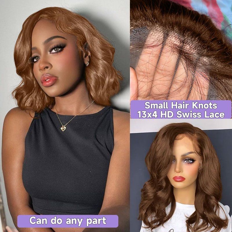 - HD Lace Front Wigs Human Hair:HD Transparent 13x4 Ear to Ear Chocolate Brown Lace Front Human Hair Wig Free Part Big Lace Parting Space.Durable Swiss Lace Bob Wig Human Hair Match All Type Skin Colors and Look More Natural .Can Make Middle Part and Side Part,C Part. Can Make Ponytail & Bun,Our Bob Wig Human Hair is Medium Cap Size(21.5Inch - 22.5Inch) with 3 Combs and Adjustable Straps, Easy to Adjust, It Can Help You Fixed on Your Head,More Easy to Wear.