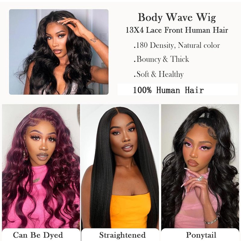 - 【Body Wave Lace Front Wigs Human Hair Material】:100% Unprocessed Brazilian Virgin Body Wave Wigs Human Hair : Made With The Finest Quality Human Hair, Our Wigs Boast a Soft Texture That Doesn't Shed or Tangle, Ensuring Long-Lasting Comfort.