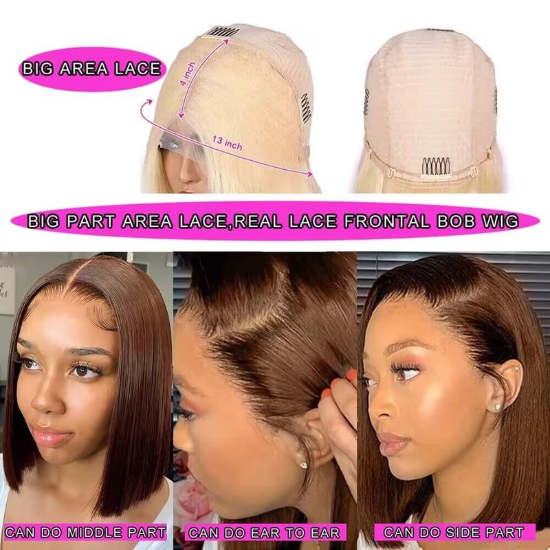 - Color: #4 Brown 13X4 Straight Bob Wig Human Hair