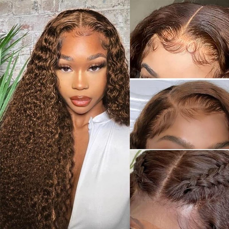 - Color: 13x4 Brown Curly Lace Front Wigs Human Hair