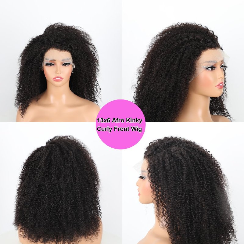 - Human Hair Wigs for Women:13x6 Free Part Afro Kinky Curly Wigs for Women Wet and Wavy Wig Hairline Pre Plucked,Knots Pre Bleached,True to Length Weight.13x6 Lace Front Wigs,Change the style easily.Can be Part Any Way,and Restyled as Your Own hair.More Styles Depends on Your Like