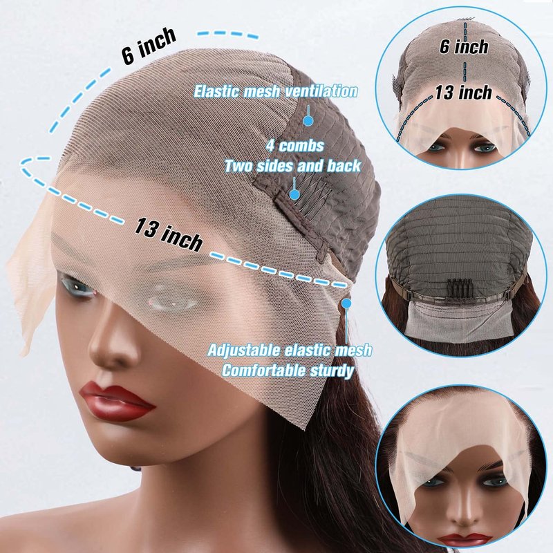 - Hd Transparent 13X6 Straight Human Hair Wig: adjustable band for your convenience, adjustable to fit most head sizes(22-22.5 in.) 4 combs and adjusting strap (default) for safety and comfort with natural hairline.