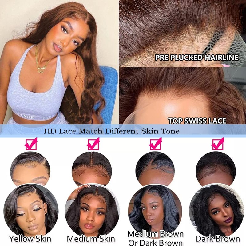 - Color: #4 brown body lace front wigs human hair