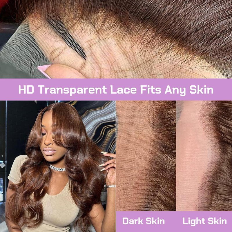 13x6 Chocolate Brown Lace Front Wig Body Wave Wigs Human Hair 200% Density Hd Transparent Front Wigs Human Hair Pre Plucked with Baby Hair Brown Colored Wigs for Women Human Hair Wigs 28 Inch