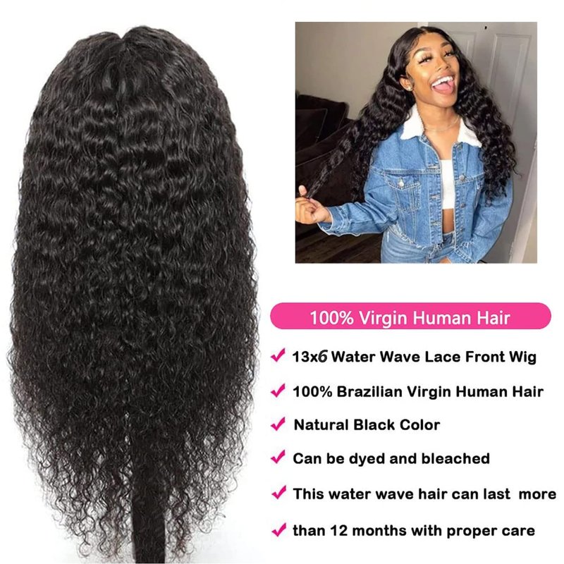 13x6 HD Transparent Deep Wave Lace Front Wigs Curly Human Hair Wigs for Women Glueless Brazilian Curly Lace Frontal Wigs Human Hair Pre Plucked With Baby Hair Natural Black 180% Density(26inch)