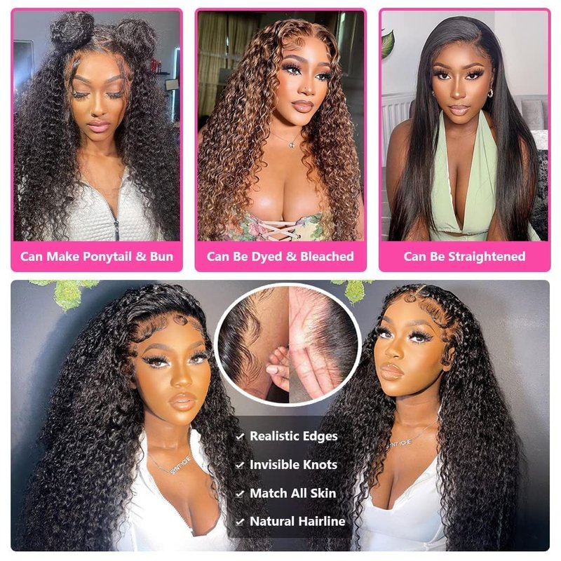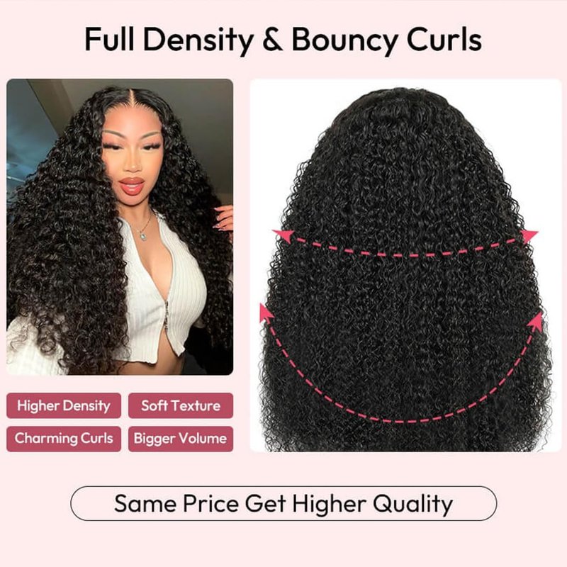 - 【13X6 HD Kinky Curly Wig Human Hair Material Material】100% unprocessed virgin human hair, no shedding and no tangle. Can be bleached, dyed, curled, and straightened. 180% Density, Absolutely Soft, Full and Glossy!!!