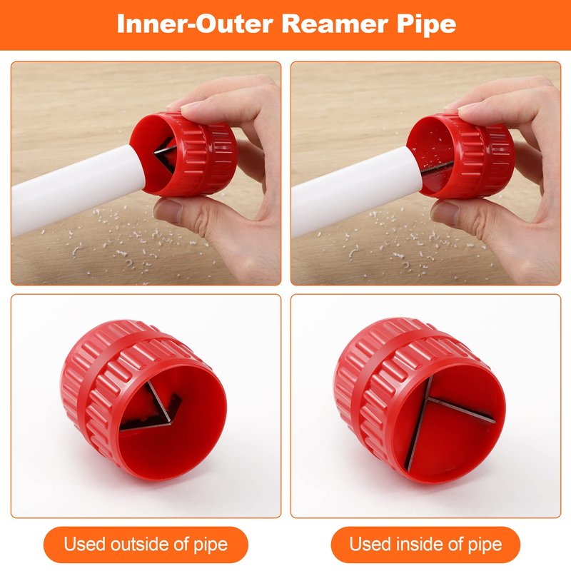 - Deburring Function: the red pipe reamer tool is suitable for use on the inside and outside of the pipe; The deburring tool contains 6 metal blades in a tapered arrangement; This design can file the burrs on the inside and outside of the pipe; It is suitable for 1" to 5/8" pipes; Both clockwise and counterclockwise directions can deburr, which is convenient for pipe installation