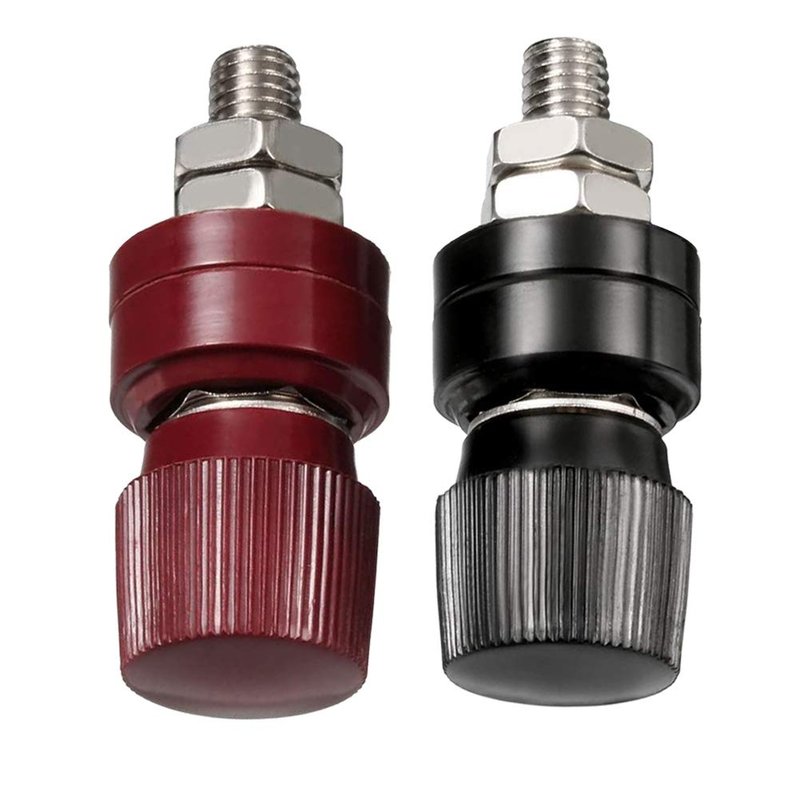 1/4" Copper Battery Terminal Stud Connector, Ampper M6 Remote Battery Binding Post Junction Post Block Terminal Kit, Pack of 2 (Red and Black)