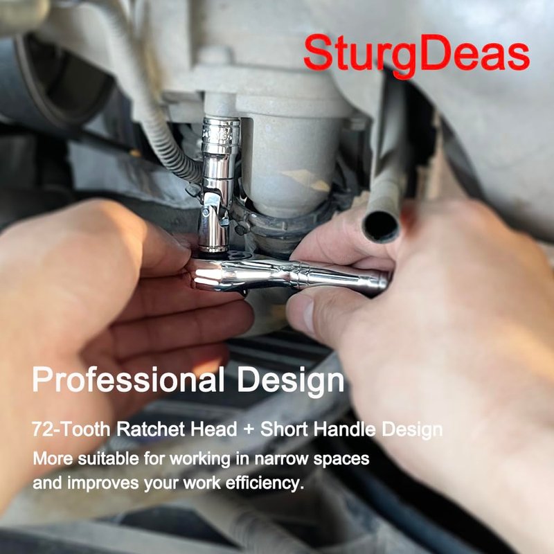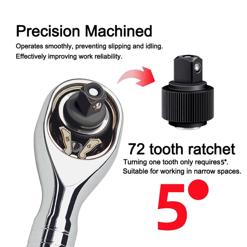 - Professional Design: The stubby socket wrench uses 72-tooth gears internally, with only 5 degrees of swing space per tooth. Coupled with a short handle design, it is more suitable for working in narrow spaces and improves your work efficiency.