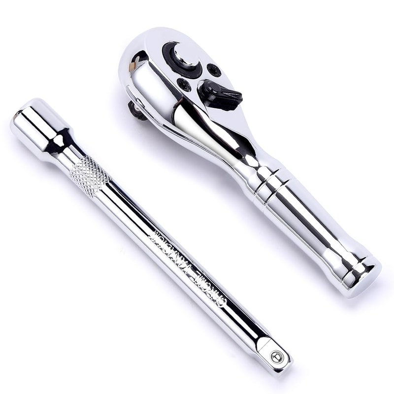 1/4-Inch Drive Ratchet Wrench, 72-Tooth Stubby Quick-Release Socket Wrench with a Extension Bar(4 inch), Reversible Switch, Chrome Alloy Made…