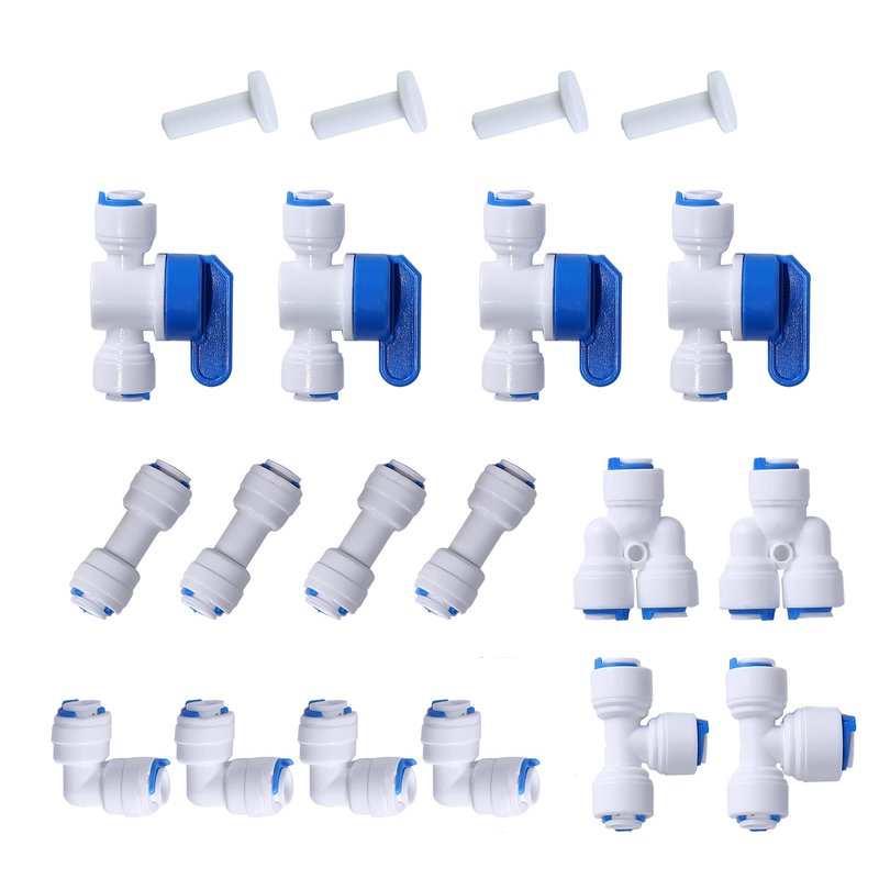 1/4" OD Quick Connect Push in to Connect for Water Reverse Osmosis System Water Tube Fitting (Ball Valve + T + I + L + Y + end cap , 20-Pack)