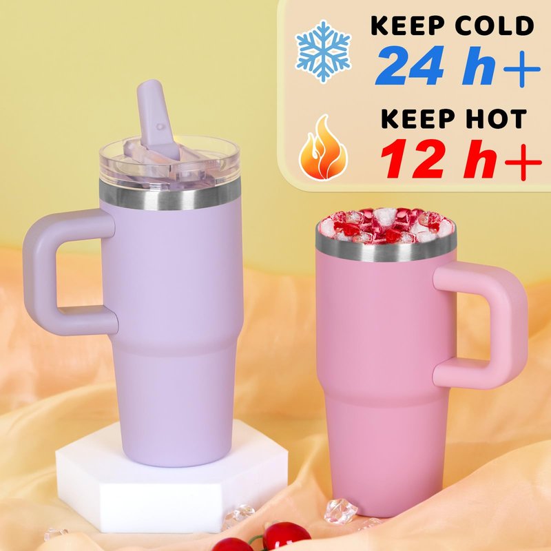 - Double-Wall Vacuum Insulation : The 14 oz flip straw tumbler with handle for kids keeps drinks cold for 24+ hours or warm for 12+ hours.