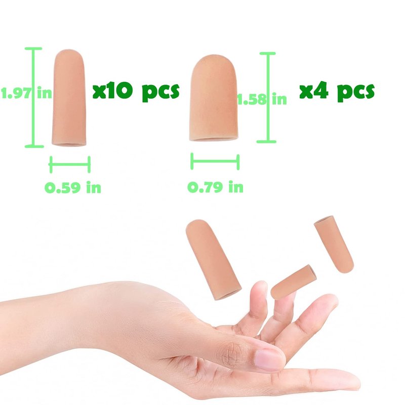 Finger protectors are elastic, flexible, and stretchable.14 pieces gel finger cots can protect your fingers from friction, pressure and irritation and help to relief finger arthritis, corn, blisters, callus, finger cracking, dermatitis, finger numb, trigger finger and finger arthritis.