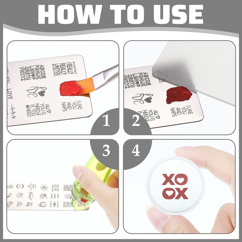 - How to use: first, you should apply some polish on your nails and your desired patterns of the silicone plate; Second, lean the scraper and scrape the needless polish off quickly; Third, press the clear stamper for nails gently and pick up the pattern; Fourth, roll the stamper lightly on your nail, and then the beautiful patterns will be applied on your nail