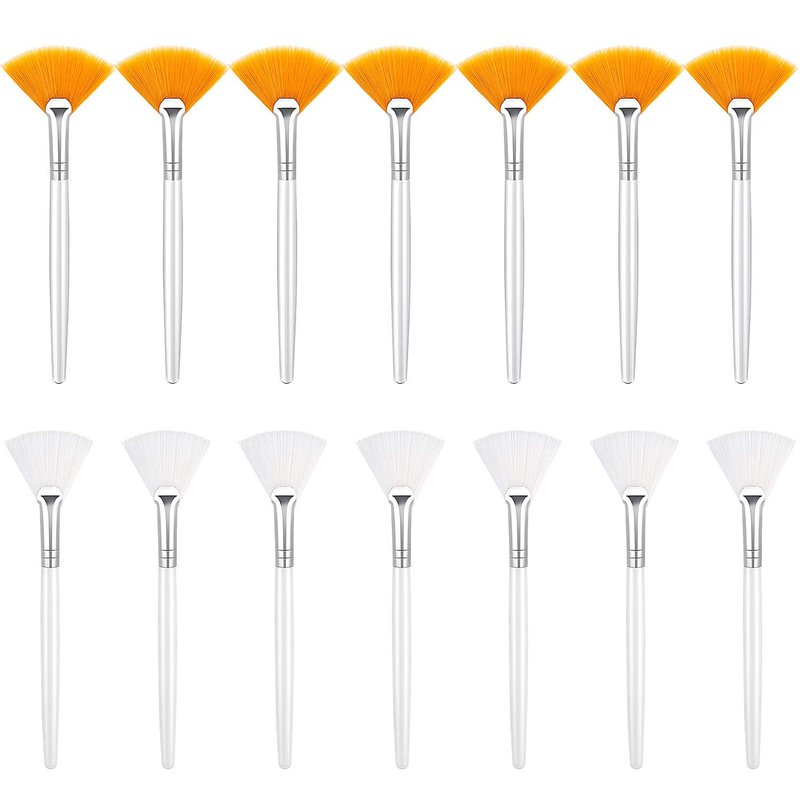 14 Pieces Fan Brushes Facial Applicator Brush Soft Fan Brushes Acid Applicator Brush Cosmetic Makeup Applicator Tools for Mud Cream (5.82 Inches, Yellow, White)