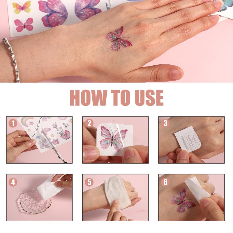 - Package Content: You will receive 14 sheets of glitter butterfly tattoos in over 100 styles, all kinds of butterflies, flowers, fairy, bubbles and angel wings elements are very popular with girls of all ages. Brilliant colors provide a lot of fun for children and adults at various parties.