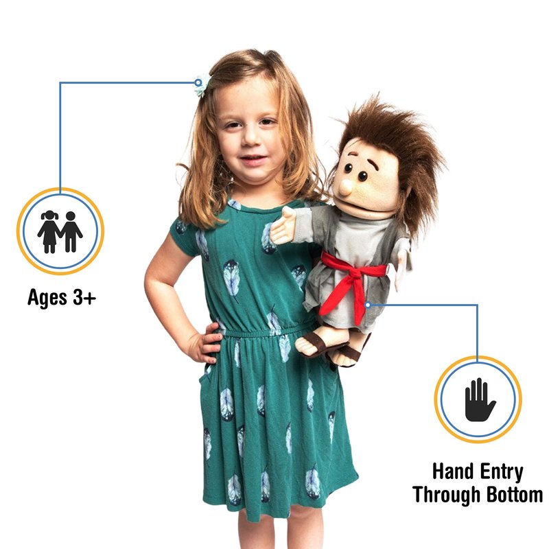 This beautiful hand puppet measures about 14 inches tall (from head to toe). Puppets like this are not only fun- they're educational as well. Let your child's imagination soar with this great, creative, pretend play toy!