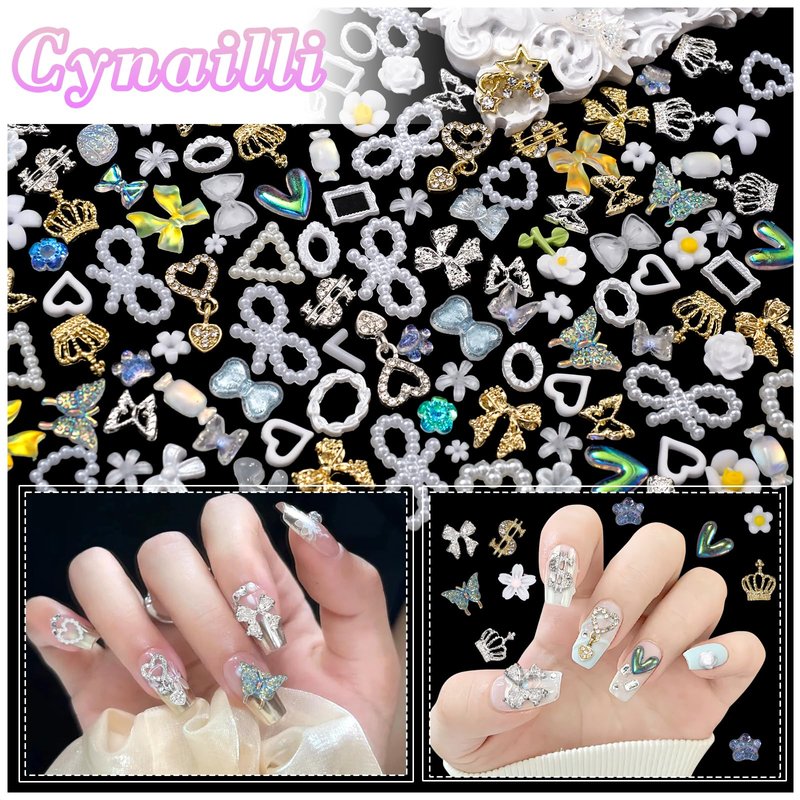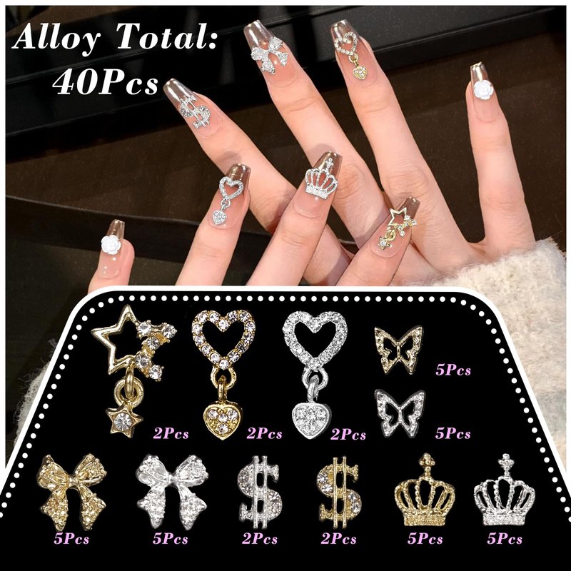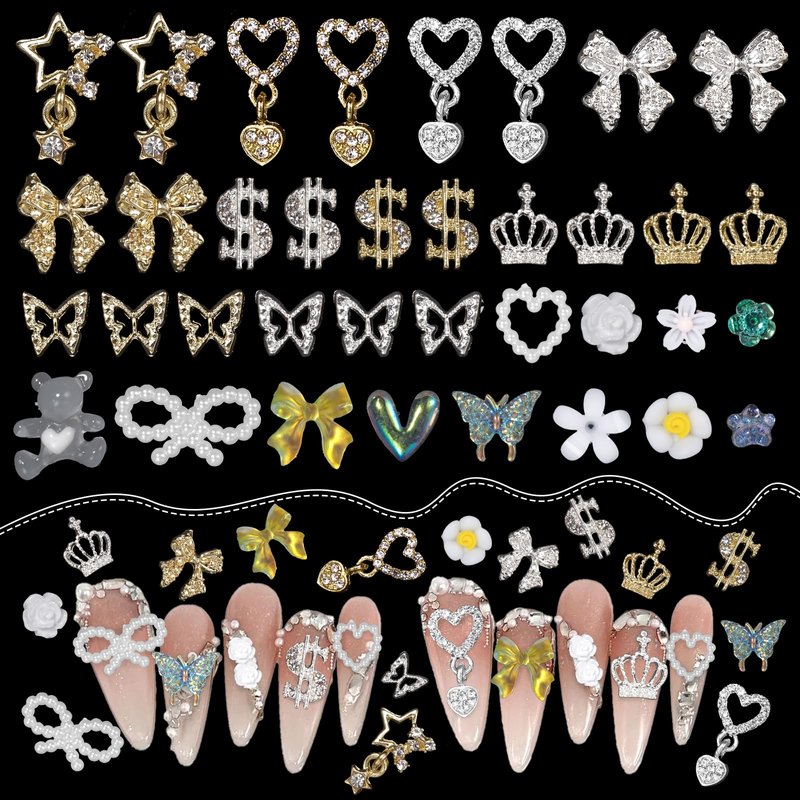 - Exquisite Design: These cute acrylic nail charms and alloy nail gems, including multi-shape butterfly, bows, star, heart, flower, cat paw, dollar, crowns etc.. You can diy your nail art randomly. Adding more 3D effect to your nail art design