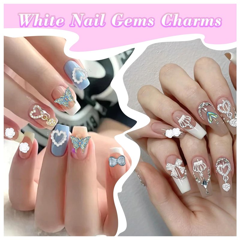 - Package Included: You will receive a package of 40 pcs of silver&gold alloy nail gems with rhinestone and 100 pcs multi shape white acrylic nail charms. Sufficient quantity and diverse style nail charm to meet your daily design and replacement needs