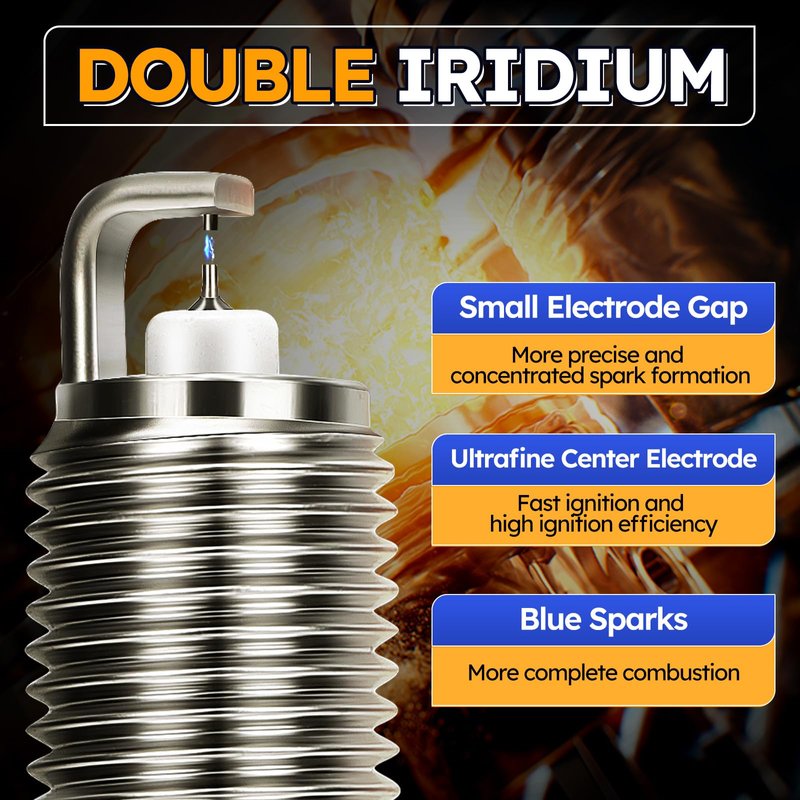 - ✔High-quality: The spark plug is double iridium spark plug, have a much longer working life, can work 100000 kilometers, consistent and stable spark. Iridium center electrode firing pin provides exceptional ignitability, faster starts and quicker acceleration, better fuel economy and lower emissions.
