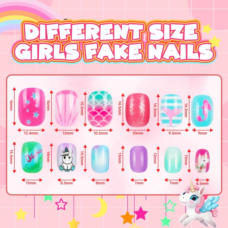 - 【SAFE KIDS FAKE NAILS】: Our fake nails for kids girls made with non-toxic and high-quality material, no harm to children's fingernails and skin,durable and reusable. Safe for Kids to DIY their beautiful nail art and enjoy the fun of nail art