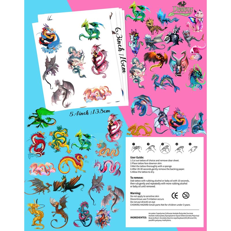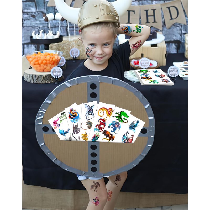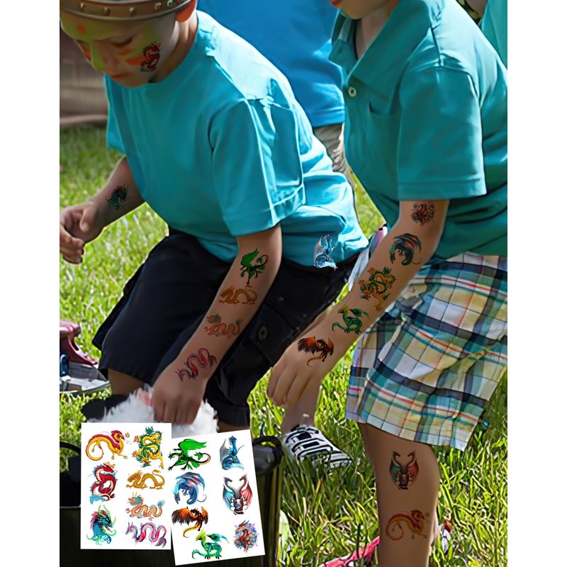 - Friendly to Skin Dragon party decorations,our temporary tattoos have been put through rigorous party testing and are 100% guaranteed to last all day,Non-toxic, harmless and tasteless, the tattoos do not cause irritation