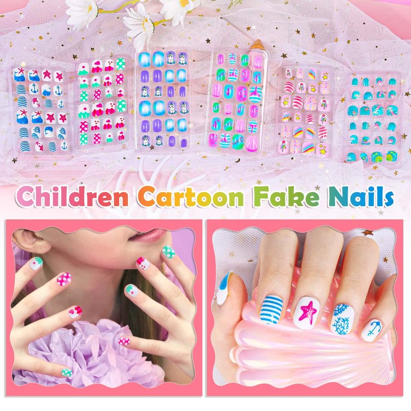 - 🎁【Nails for Kids Value Pack】The funny press on nails for kids comes with 6 boxes of girls fake nails, each box contains 24 pieces full cover short false nails in different sizes, 144 pieces in total. Glue on nails for kids allow reusing the nails tips multiple times, assorted colors and enough quantity for you to create charming nail art styles