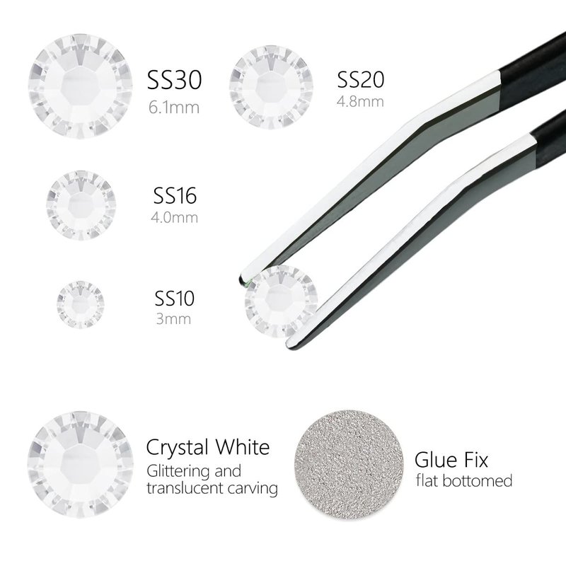 - ❤【Crystal Clear Rhinestones for Crafts-Choice Warm Tips】Please watch the size you need, you can refer to the size chart, these small sizes are fit for nail art, if you need to decorate your clothes, shoes, cups etc. you may need smaller or larger size. You can search Qiipii rhinestones to find large size and other color stones.