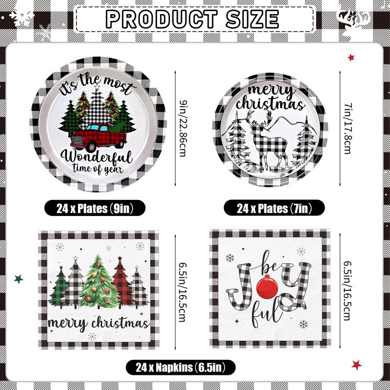 - Package include: You will get 48*7"buffalo plaid paper plates, 48*9"buffalo plaid paper plates, 48*buffalo plaid napkins.