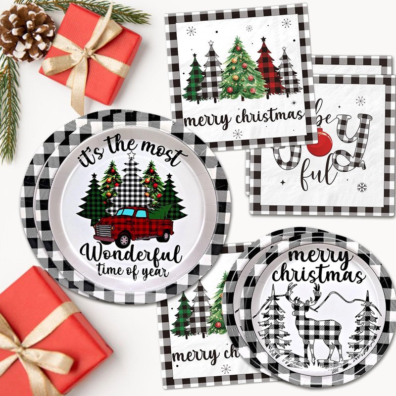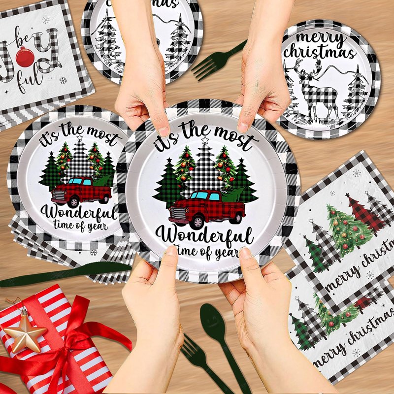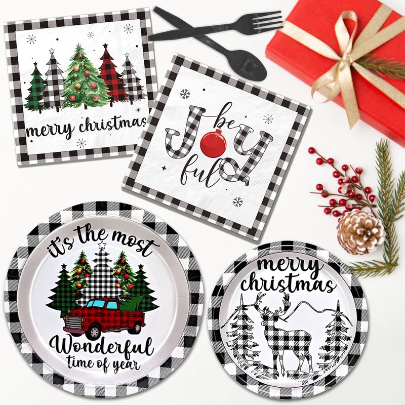 - Quality: The buffalo plaid Christmas party tableware decorations is made of food - grade materials, non-toxic, odorless, light, won't fold, tear or break easily,which is very suitable for dessert, party food and drinks.