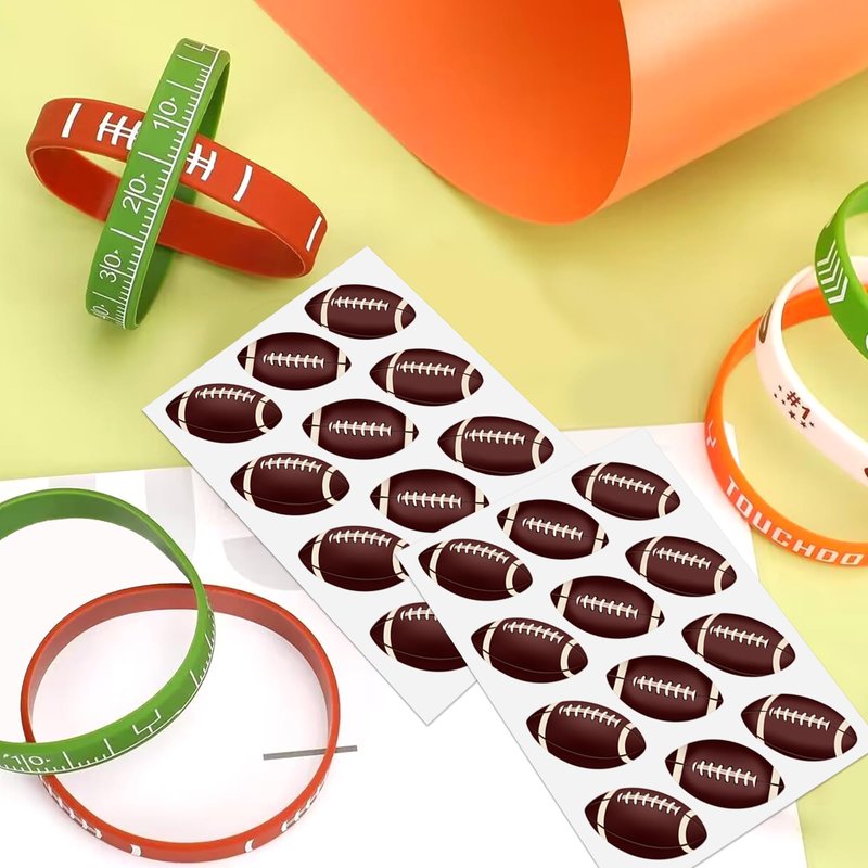 Football party decorations can be used wherever you go with our versatile Silicone bracelets. Their small, lightweight design makes them convenient to tuck into your pocket, purse, or backpack, ensuring effortless carrying