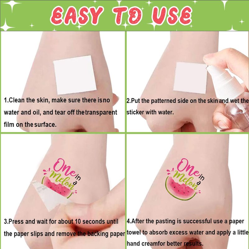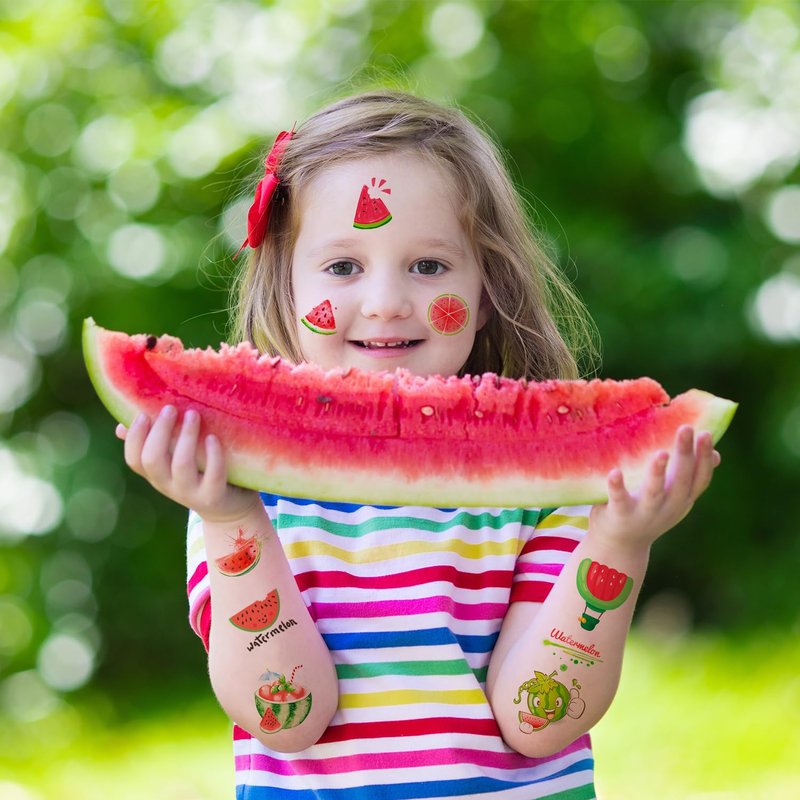 - High Quality Watermelon Tattoos: These watermelon tattoos made of high quality safety and green paper, non-allergenic and totally safe for your children’s skin. Let them enjoy the party better.