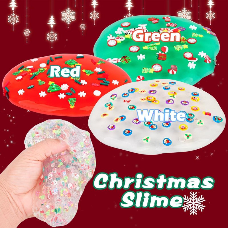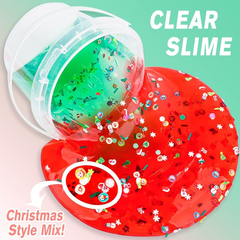 - GREAT SLIME KIT FOR GIRLS AND BOYS: You will get 20 OZ pre-made vat of crystal slime with 6 Christmas collection charms including Father Christmas, Snowman, Christmas Tree, Star, Christmas Stocking, Gingerbread Villain, easy to store and put back in the slime bucket when not in use!