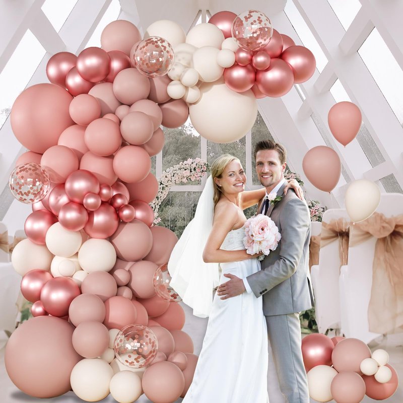 - Package Include: The pink balloon arch kit include 41pcs dusty pink balloons(18inchx1, 12inchx5, 10inchx15, 5inchx20), 41pcs dusty rose pink balloons(18inchx1, 12inchx5, 10inchx15, 5inchx20), 26pcs sand white balloons(18inchx1, 12inchx5, 10inchx10, 5inchx10), 30pcs metallic pink balloons(12inchx5, 10inchx10, 5inchx15), 12inch rose gold confetti balloonsx5, ribbonx2, glue dotsx1, decorative stripx1