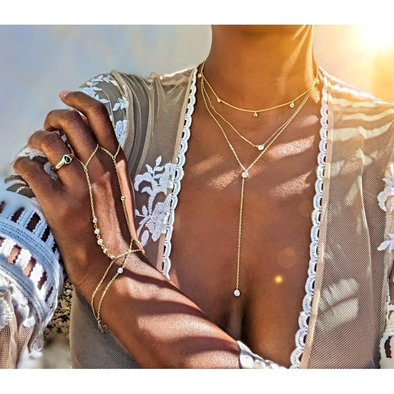 - Size: Each gold dainty diamond necklace is made with a 2 inch extender making it adjustable from 16 to 18 inches in length with a 3.25 inch cleavage plunge.
