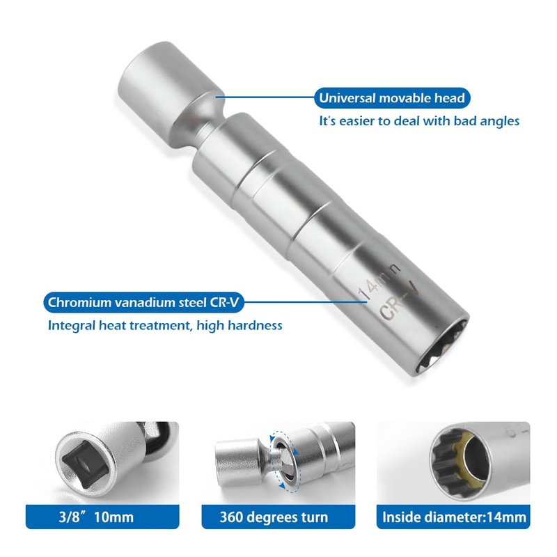 - ⭐ Perfect After-Sales Service:We care about our valued buyers, and each of our 14mm spark plug socket is carefully tested and inspected before delivery. If you have any questions, our customer service staff will be happy to help you. If the item is defective within 1 month, you can return it to us. Wishing you a pleasant shopping experience!