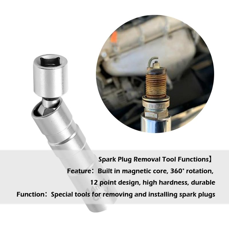 - ⭐ Magnetic Core+360° Rotation:Our spark plug tool adopts an advanced 12 point design, which is thinner and more compatible than standard spark plug socket set. The internal magnetic core ensures that the spark plug is securely fixed during installation to prevent its loss. The 360° rotatable head allows it to freely enter narrow areas and quickly complete work.