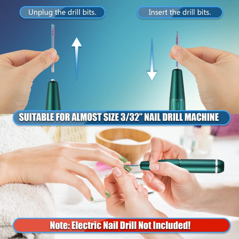 - Universal 3/32-inch Puntas Para Drill Nails: Fit most electric or rechargeable manicure nail file machines. Perfect for nail salon, beauty parlor, spa or personal manicure pedicure, or DIY nail art at home.