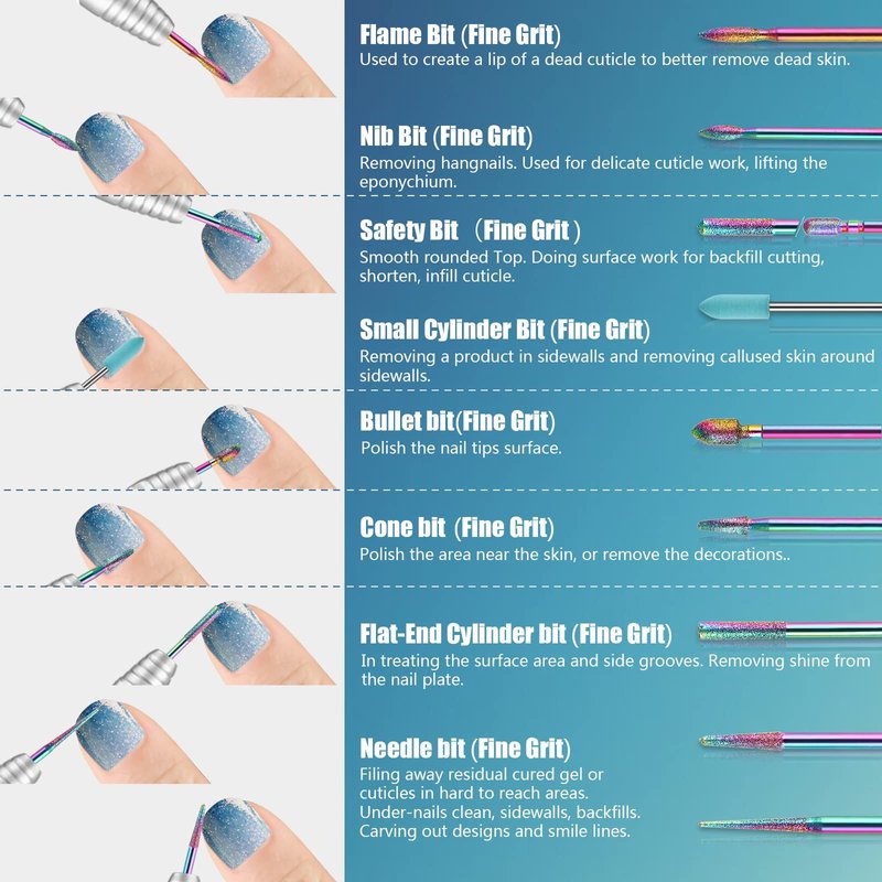 - Safety Cuticle Bit for Nail Drill: Protect your skin from being harmed with superior craftsmanship and well-tested design. Gentle and smooth used, suitable for Nail Tech or Beginners.